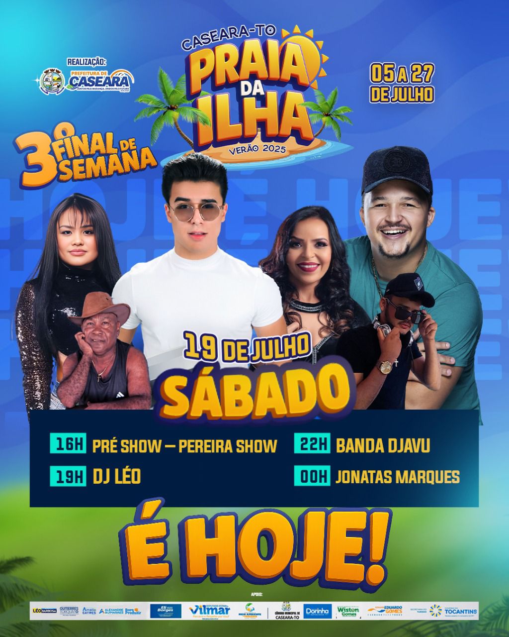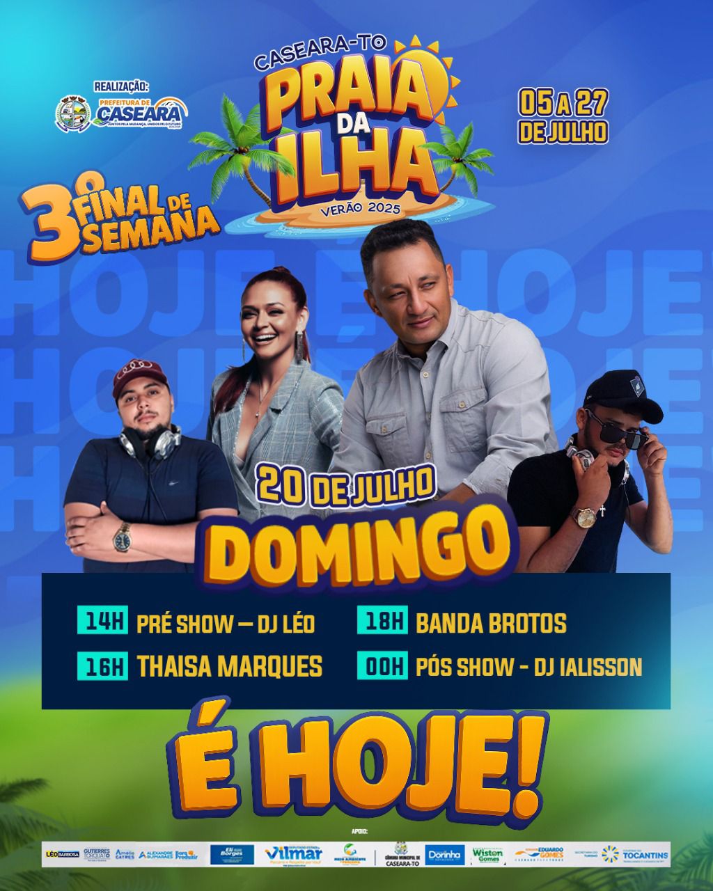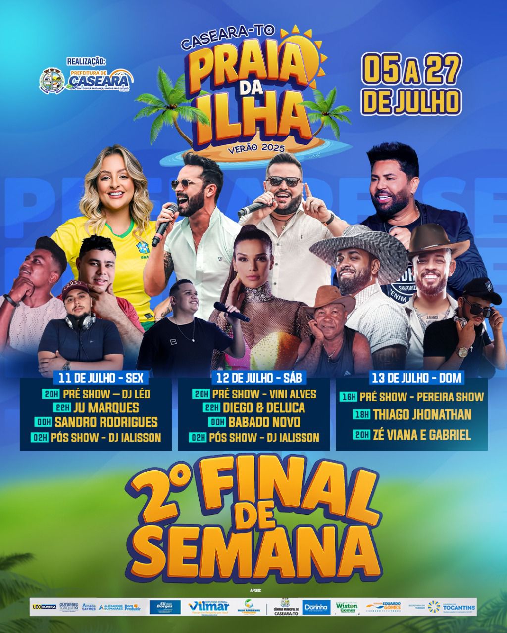 A Prefeitura de Caseara do Tocantins, através da Secretaria Municipal de Turismo, realizou a programação completa e imperdível da Praia da Ilha 2025. Este evento, que já se tornou um marco no calendário de verão da nossa região, é realizado em parceria com diversos parceiros e apoiadores que colaboram para tornar esta edição ainda mais especial e inesquecível para todos os visitantes e moradores.
